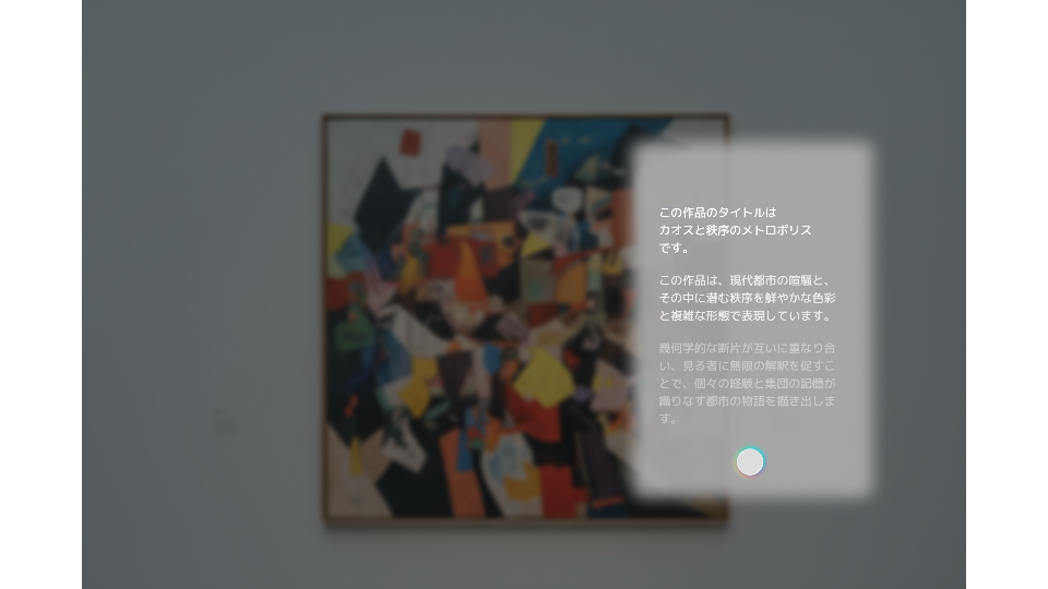 「Up-Agent」は、社内ドキュメントや外部データを統合し、AIが最適な情報を提供する次世代ソリューションです。 XR Kaigiでは、第1弾の施設案内アプリ「Up-Agent Guide」を展示。 美術館では作品解説や対話型ガイド、工場では作業や設備操作を支援します。自然対話で質問すればAIが状況を理解し、答えが“その場で目の前に現れる”新しい体験を実現。 Xreal Air 2 Ultra、dynaEdge XR1、Apple Vision Pro、THINKLETなど、マルチデバイス対応により環境に応じた最適な体験をご提供します。