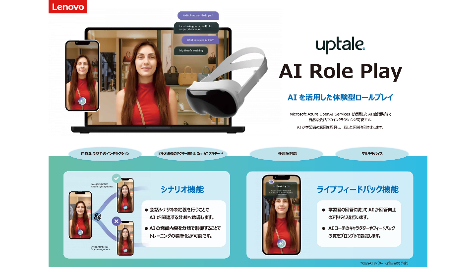 Lenovoモバイルワークステーション「ThinkPad Pシリーズ」、デスクトップ「ThinkStation Pシリーズ」のハイパフォーマンスを生かしたCAD/CAE、教育・研究向けソリューションを紹介します。Meta社の「Meta Quest 3 / 3S」を活用したAutodesk VREDのMixed Reality表示、360度映像ベースのVRトレーニングソリューション「Uptale」のAIを活用した対話トレーニングなどの実演デモも体験いただけます。